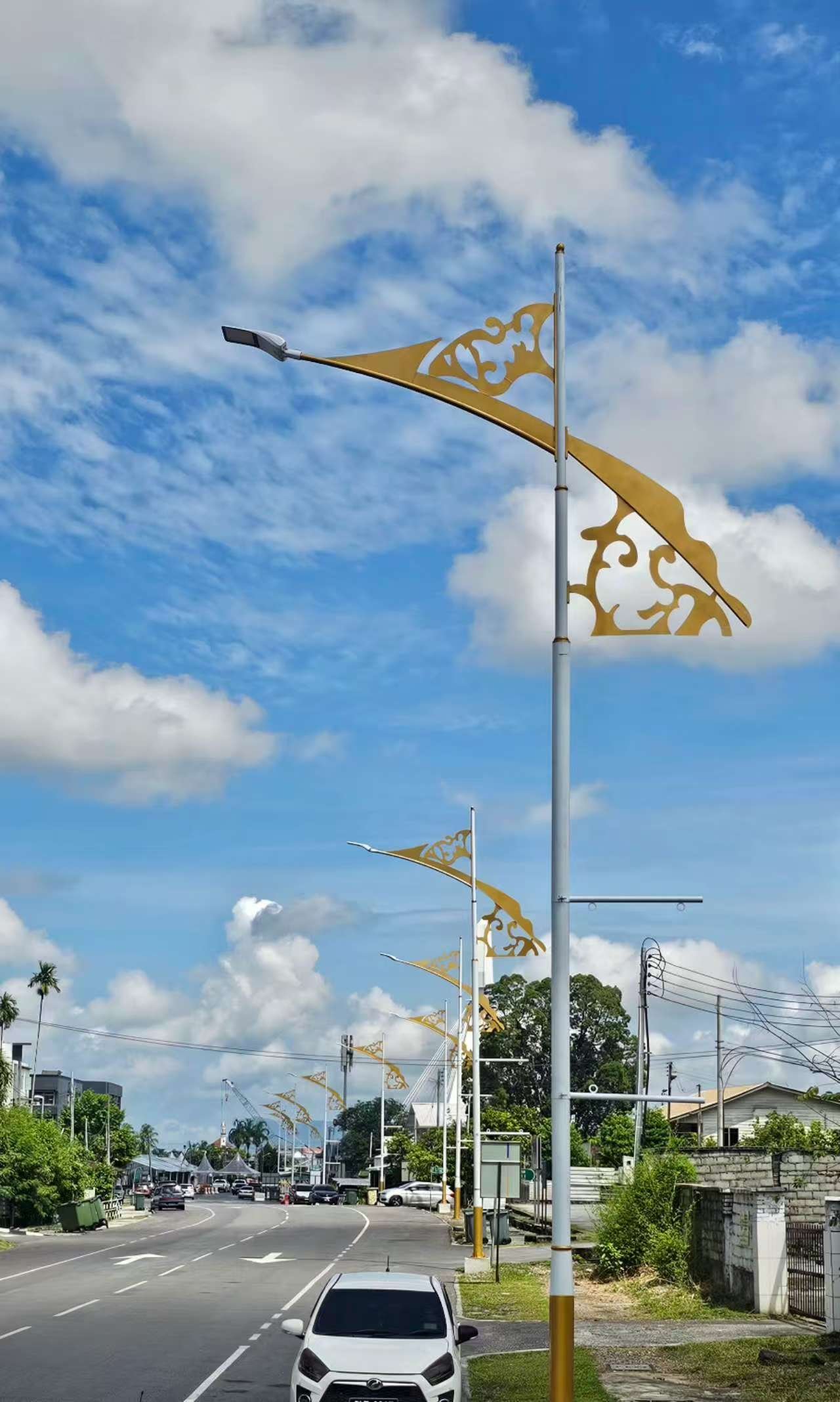 Installed in August 2025, this project features King Series LED street lights on decorative golden poles in Malaysia. With a self-cleaning tempered glass cover and tool-free maintenance design, these fixtures offer a perfect blend of modern aesthetics and tropical weather resilience.
